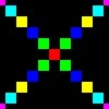 The result is a circular lensed image on the square polygon, with black corners. The angular distribution is like polar graph paper, with angle increasing linearly with distance from the center.