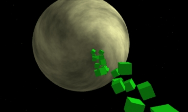 The critically acclaimed Spinning Cubes animation takes advantage of two shaders: The KMStarfield shader and the KMVenus shader. They have been modified slightly from their original form to work with animations and planets that are arbitrarily sized.