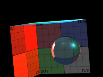 Example shader showing typical use of refraction(), reflection(), under prman. The example RIB will generate the environment map and then render the image. A more detailed example of these functions can be found at: ___